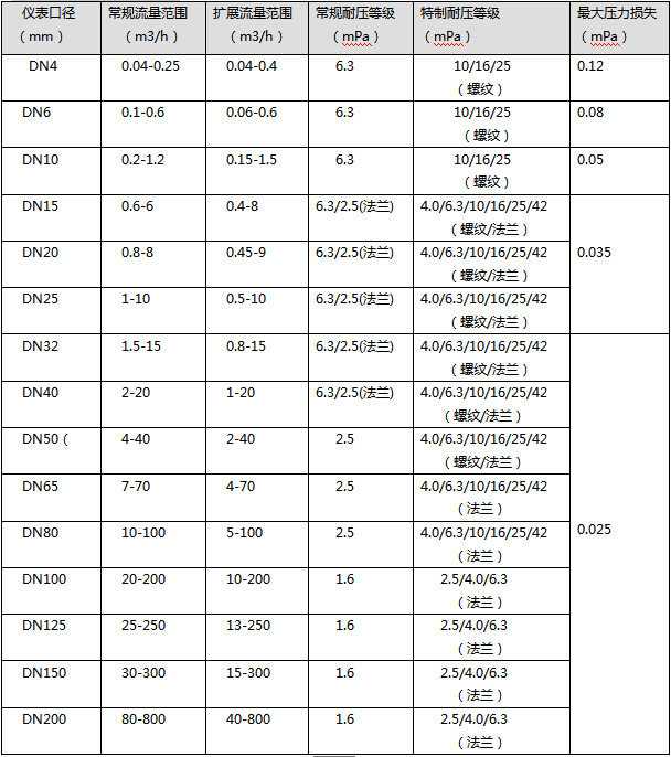 五.流量范圍及工作壓力: