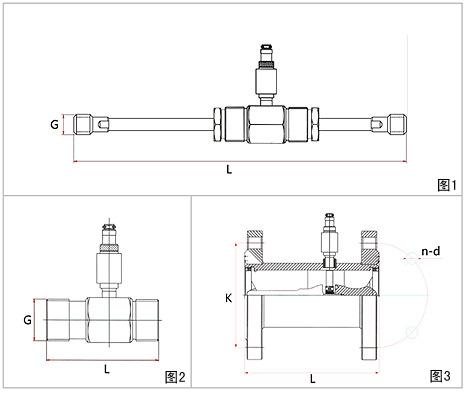 傳感器的安裝方式根據(jù)規(guī)格不同采用螺紋或法蘭連接,安裝方式見(jiàn)圖1.圖2,圖3